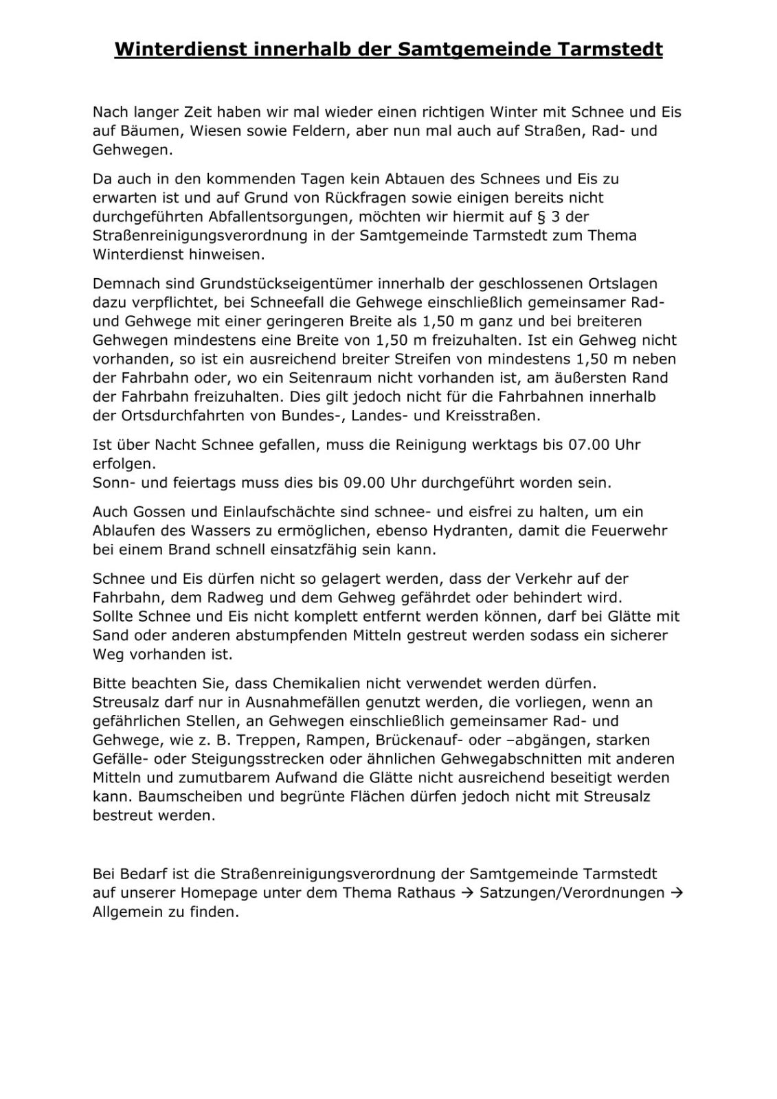 Winterdienst innerhalb der Samtgemeinde Tarmstedt