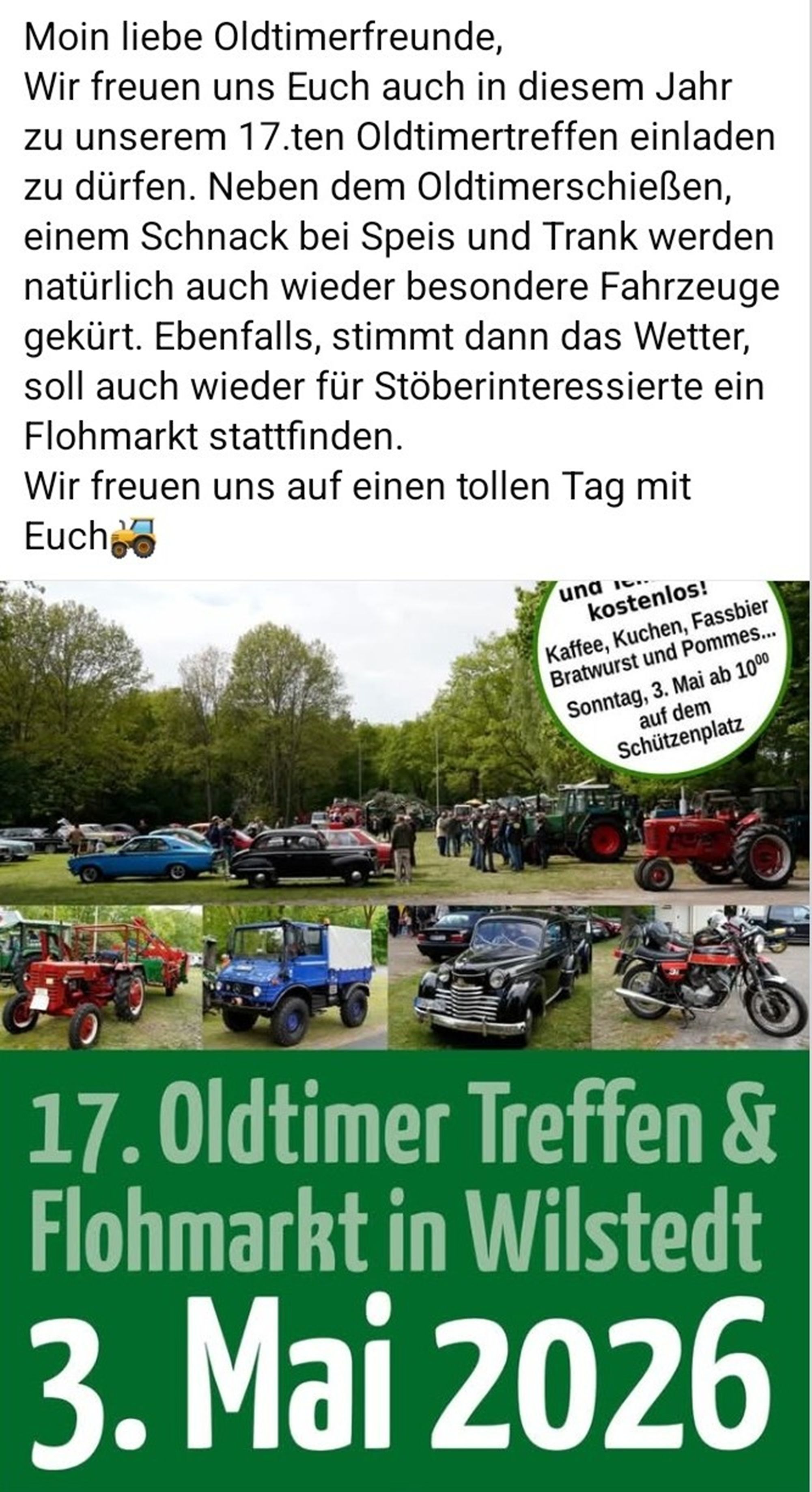 Als besondere Attraktion ist eine Oldtimer-Schau geplant. Liebhaber historischer Fahrzeuge können an dem Sonntag ihre Autos präsentieren und mit anderen Oldtimerfans ins Gespräch fachsimpeln. Den Besuchern bietet sich die Möglichkeit, klassische Fahrzeuge aus verschiedenen Jahrzehnte aus der Nähe zu sehen und zu bestaunen. Die WIG ruft Besitzer von Oldtimern auf sich für die Schau anzumelden.